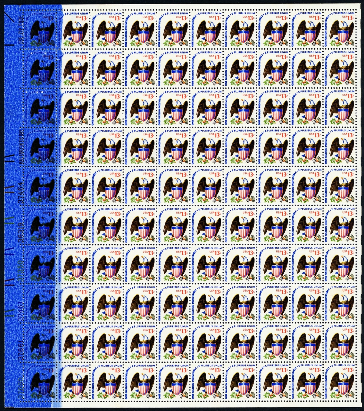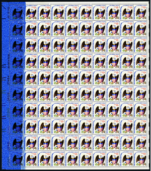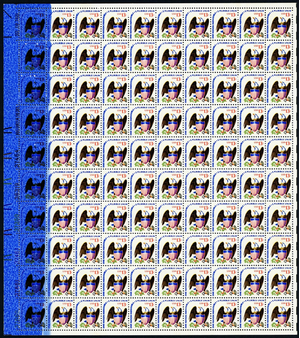 1596, MNH 13¢ Eagle Scarce Over Inking Error Sheet of 100 Stamps - Stuart Katz