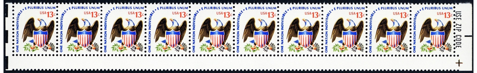 1596, MNH 13¢ Gutter Snipe Freak Error Strip of 10 Stamps - Stuart Katz