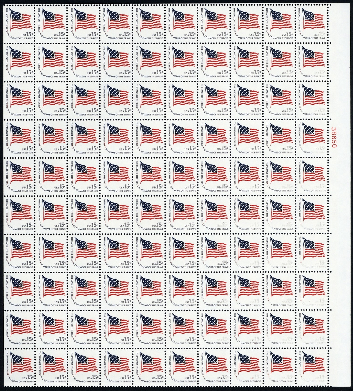 1597, MNH 15¢ Part Color Missing Error in Sheet of 100 Stamps - Stuart Katz