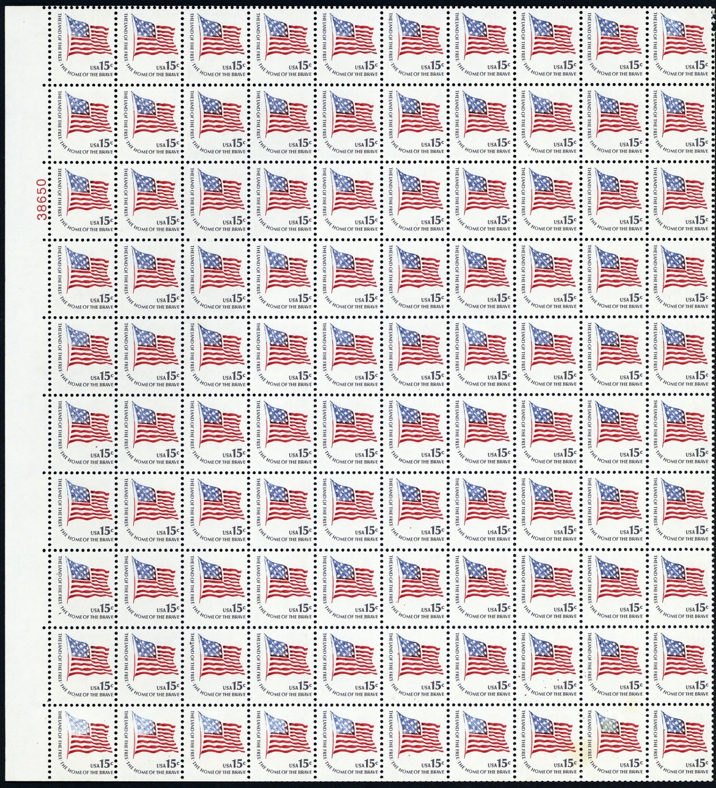 1597, MNH 15¢ Part Color Missing Error in Sheet of 100 Stamps -- Stuart Katz