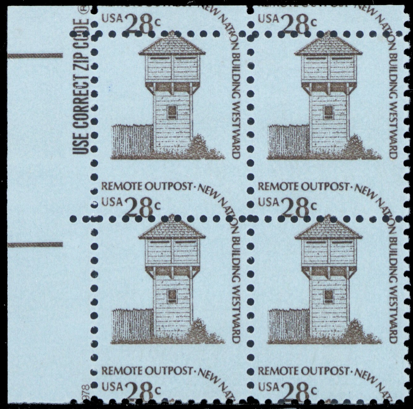 1604, Mint NH 28¢ Misperforation Error Zip Block - Remote Outpost - Stuart Katz