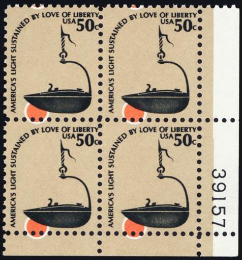 1608, Mint NH 50¢ Dramatic Orange Color Shift Error Plate Block * Stuart Katz