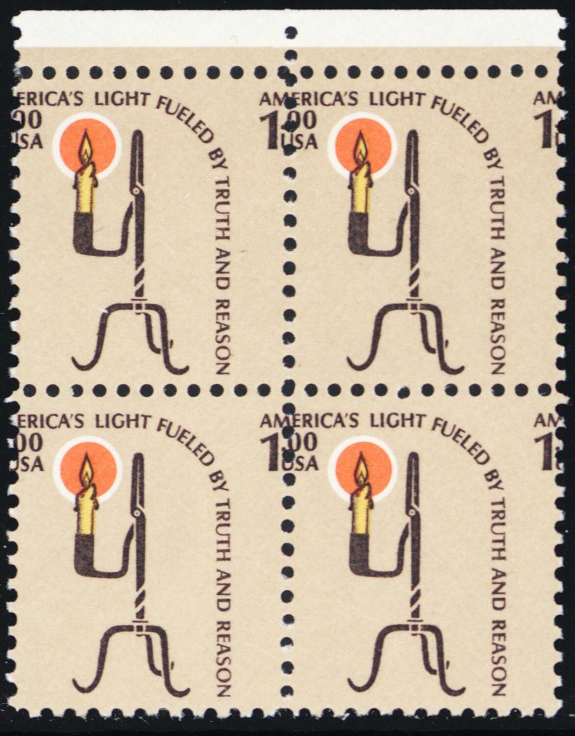 1610, MNH $1 Candle Block - LARGE Misperforation Error - Stuart Katz