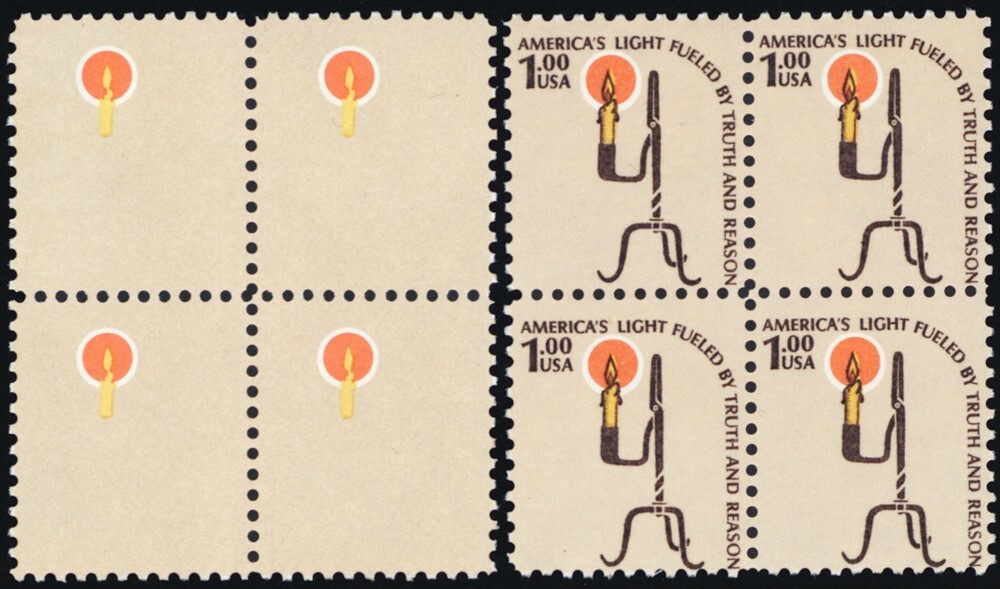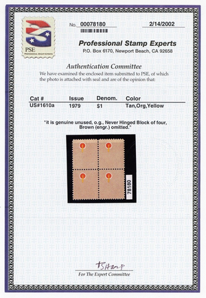 1610a, MNH $1 Brown Color Omitted Error Block With Normal - Stuart Katz