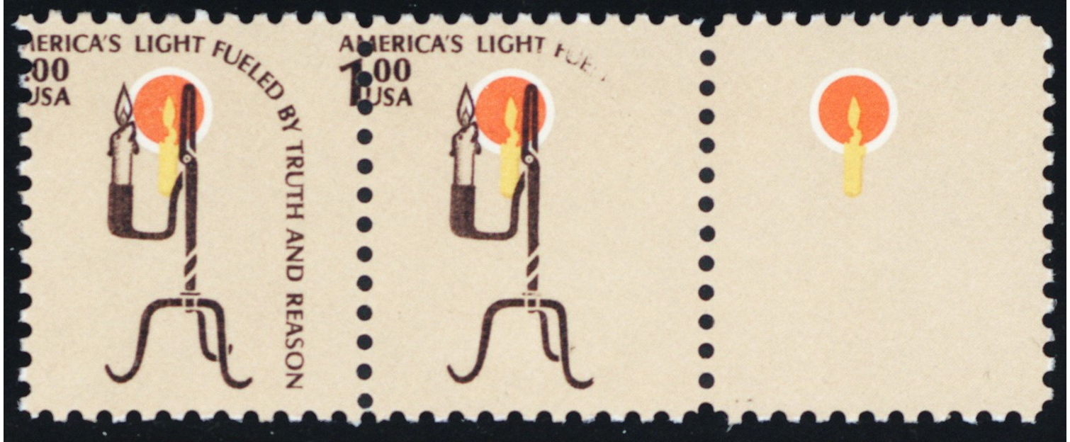 1610a, MNH $1 - RARE Transitional Error Strip of Three Stamps - Stuart Katz