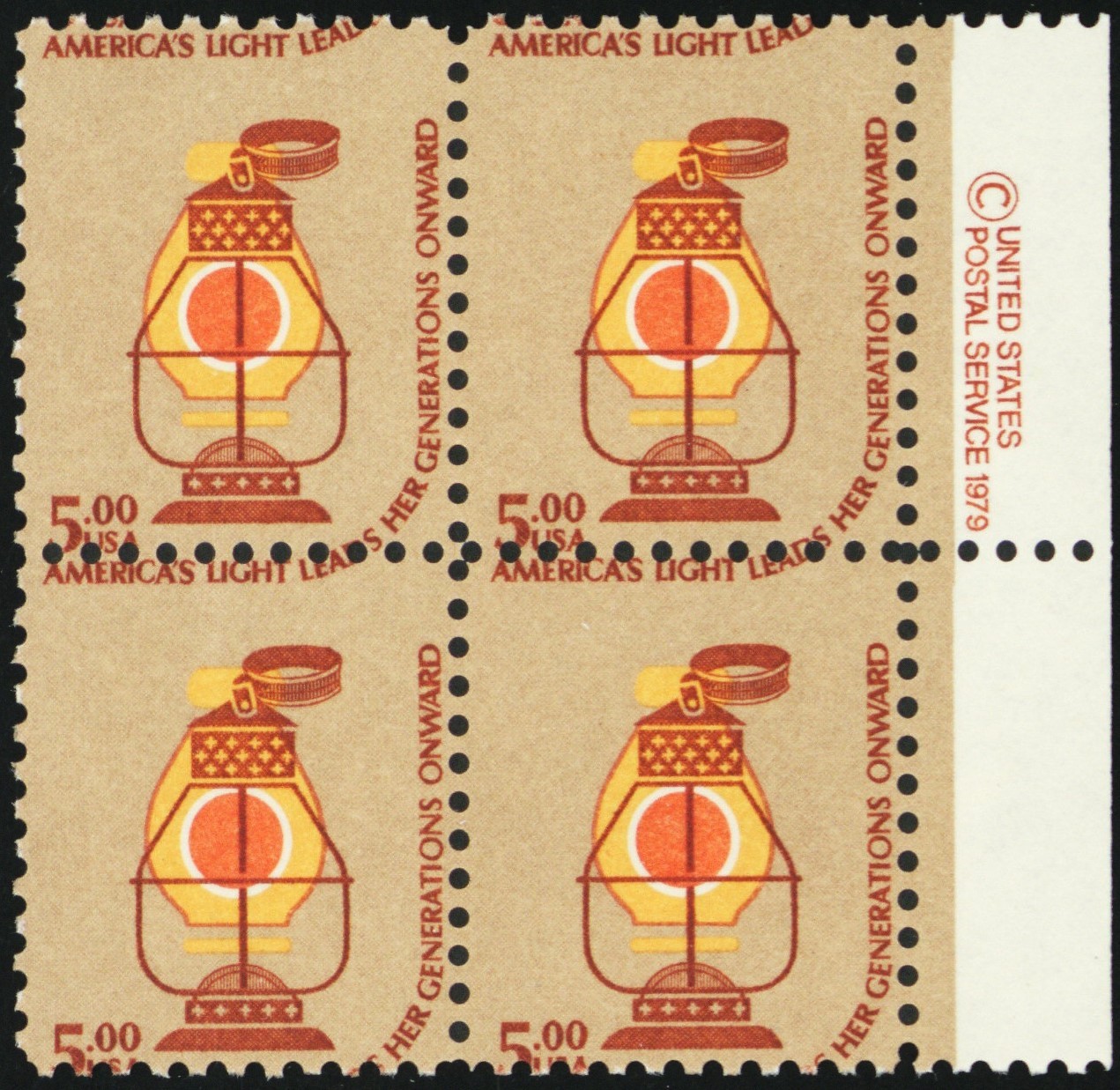 1612, Mint NH $5 - Dramatic Color Shift Error Inscription Block * Stuart Katz