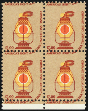 1612, Mint NH $5 - Dramatic Color Shift Error Margin Block * Stuart Katz