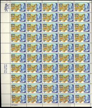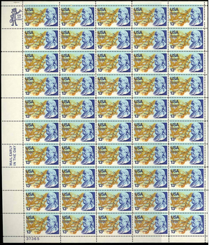 1690, 13c Bicentennial - BLUE COLOR SHIFT ERROR SHEET OF 50 STAMPS - Stuart Katz