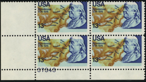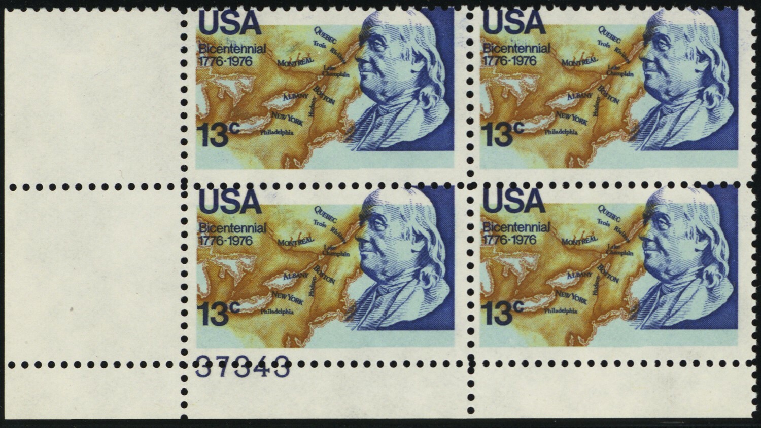 1690, MNH 13¢ Dark Blue Color Shifted UP Plate Block Freak Error- Stuart Katz
