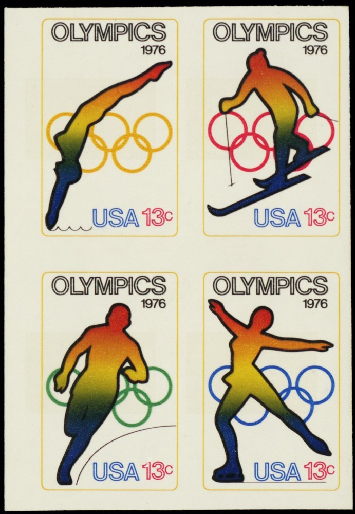 1698b, MNH 13¢ Winter Olympics Imperforate Block of Four ERROR - Stuart Katz