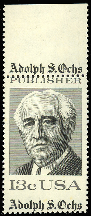 1700 Misperforated ERROR Margin Copy - 13¢ Adolph S. Ochs - Stuart Katz