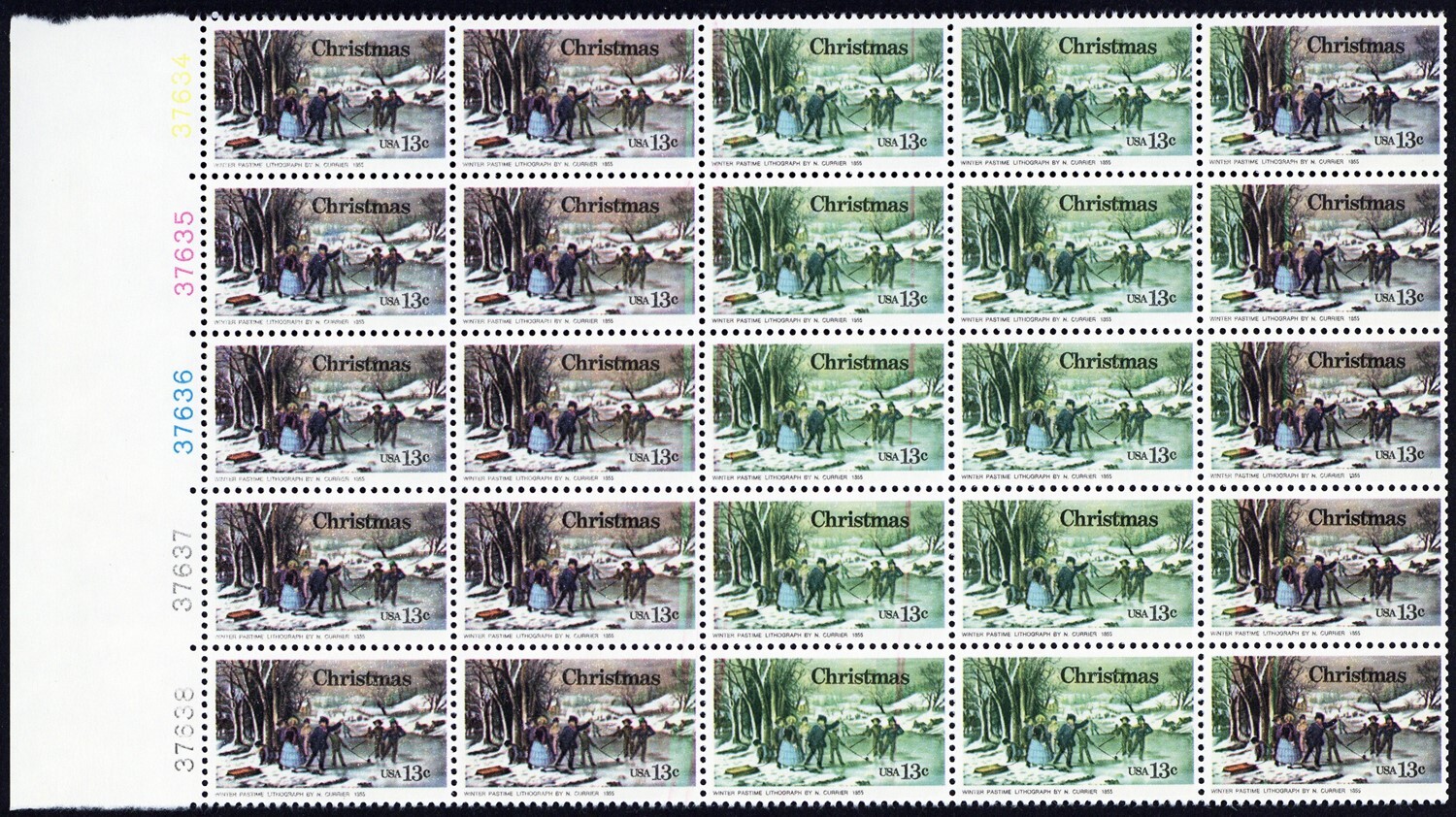 1703d, MNH 13¢ Red Omitted Transitional Error PL# Block PFC Cert - Stuart Katz
