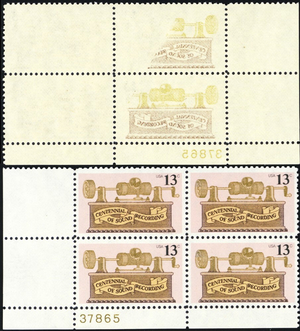 1705 Var, MNH 13¢ Block - Partial Reverse Printing Under Gum Error * Stuart Katz