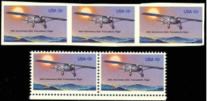 1710a, Mint NH 13c IMPERFORATE ERROR STRIP OF 3 - Spirit of St. Louis Cat $700+