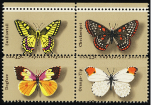 1715a, MNH 13¢ Butterflies - Misperfed Error Block * Stuart Katz