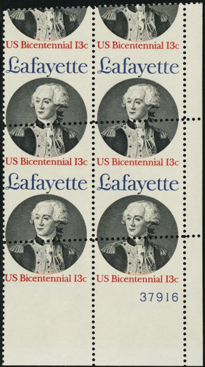 1716, HUGE Misperforated ERROR 13¢ Plate Block of Four Stamps - Stuart Katz