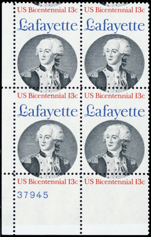 1716, Large Misperfed ERROR Plate Block Mint NH 13¢ Lafayette - Stuart Katz