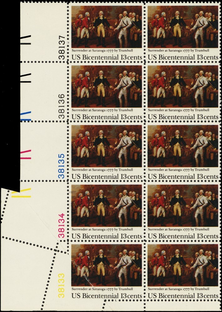 1728, Amazing Paperfold ERROR Plate Block of 10 Stamps Bicentennial Stuart Katz