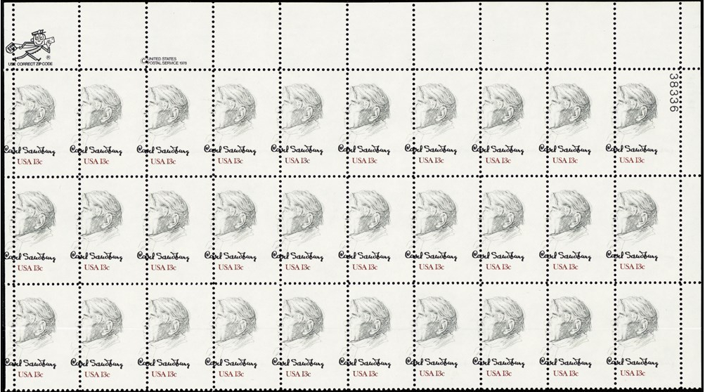1731, 13¢ Misperforated ERROR Block of 30 Stamps Carl Sandberg - Stuart Katz
