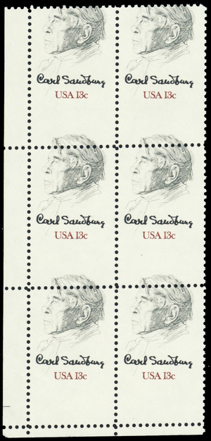 1731, Mint NH 13¢ Scarce Misperfed Error Plate Block of Six - Stuart Katz