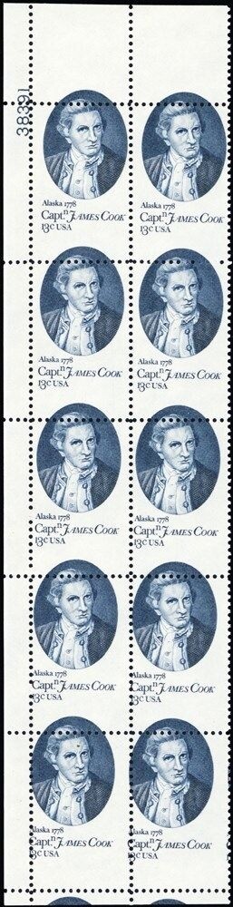 1732, 13¢ Misperfed ERROR Plate Block of 10 Stamps Captain Cook MNH Stuart Katz