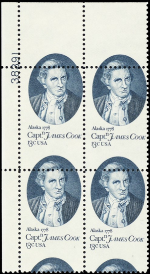 1732, 13¢ Misperforation ERROR Plate Block Captain Cook MNH - Stuart Katz