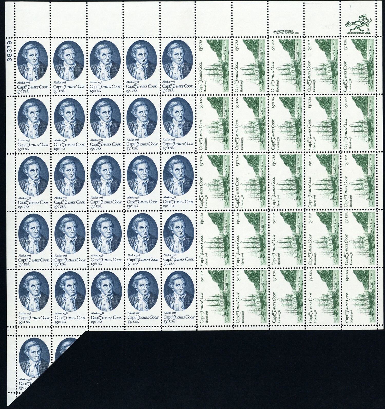 1733a, Mint NH 13¢ RARE Fold Over Error of 50 Stamps - Stuart Katz