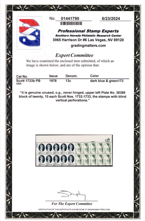 1733b, MNH 13¢ Appears as Imperforate Errors - PSE Certificate - Stuart Katz