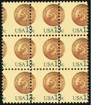 1734, Mint NH 13¢ - Misperforation Shift Error Block of Nine * Stuart Katz