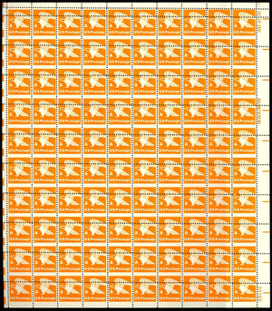 1735, 15c "A" Stamp RARE MISPERFORATION ERROR SHEET OF 100 STAMPS - Stuart Katz