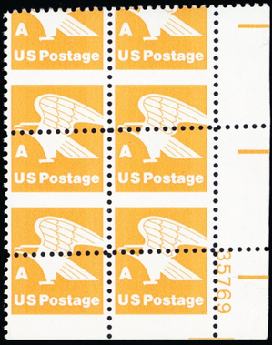 1735, Large Misperforation ERROR PL# Block of 4+ Stamps - Stuart Katz