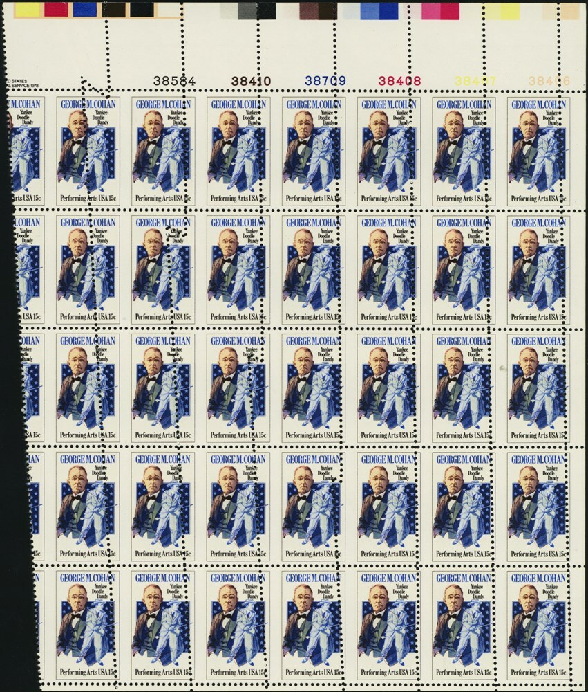 1756, Misperforation & Foldover ERROR Plate Block of 35 15¢ Stamps - Stuart Katz