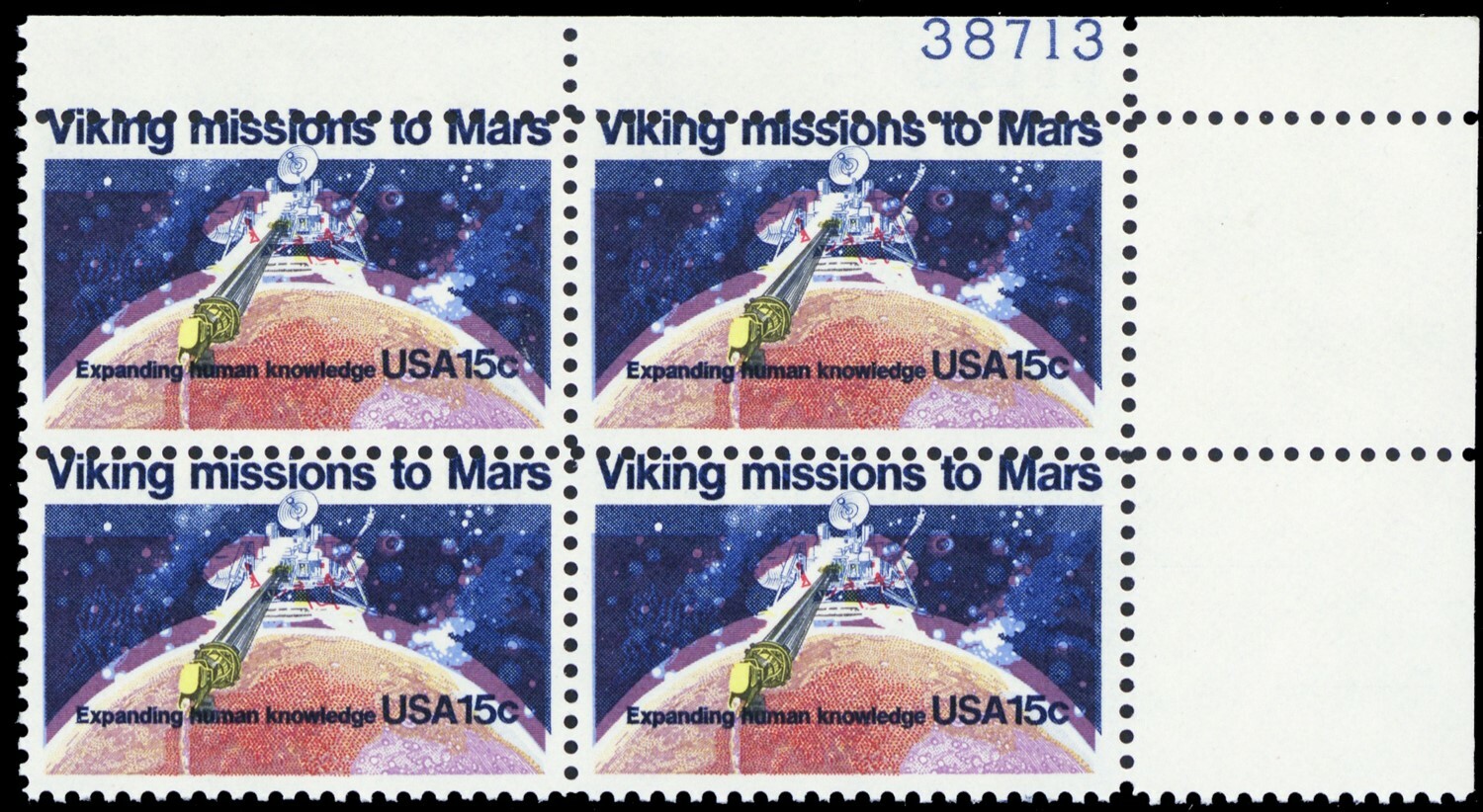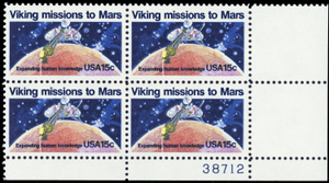 1759, MNH 15¢ BIG Color Shift Error Mars Plate Block of Four - Stuart Katz