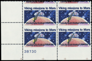 1759, MNH 15¢ HUGE PERF Shift Error Mars Plate Block of Four - Stuart Katz