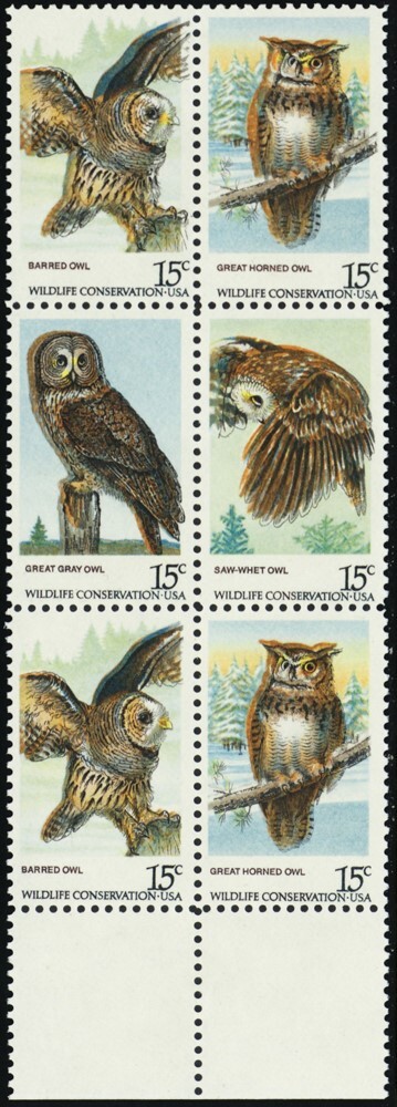 1763a, Mint NH 15¢ Owls Color Shift Error In Block of Six * Stuart Katz
