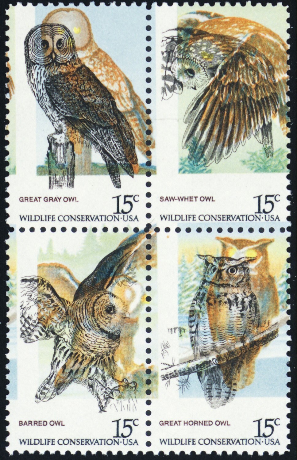 1763a, Mint NH 15¢ Owls - HUGE Color Shift Error Block * Stuart Katz