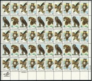 1763a, MNH 15¢ Color Shift Error In Complete Sheet of 50 - OWLS - Stuart Katz
