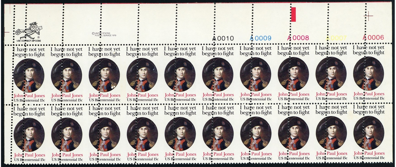 1789, MNH 15¢ Dramatic Misperf Error In PB Block of 20 Stamps - Stuart Katz