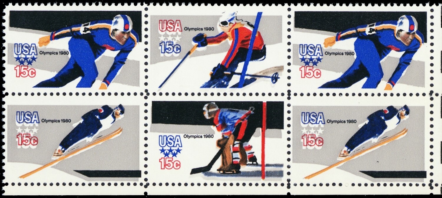 1798b, MNH 15¢ BIG Color Shift Error Olympics Block of Six - Stuart Katz