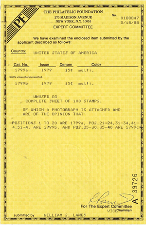 Due to the high cost of obtaining certificates we will only refund the cost of the stamp and not the cost of the certificate for stamps that sell for less than $250 that come back with a negative certificate. Stamps that sell for above $250 will receive a full refund for both the price of the stamp and cost of the certificate if it should come back not as described. For U.S. stamps only certificates from either APS, PSE or from the Philatelic Foundation are accepted, however "graded" certificates or "encased" items are not accepted.