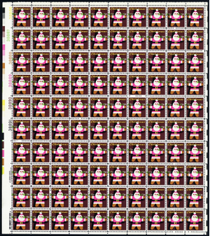 1800, MNH 15¢ Green Color Shift Error In Sheet of 100 - Santa - Stuart Katz