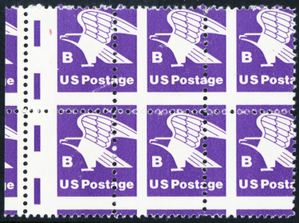 1818, MNH 18¢ Two Way Perfs Shifted Freaky Error Margin Block * Stuart Katz
