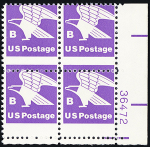 1818, Perforation Shift Error Plate Block B (18¢) Eagle --- Stuart Katz