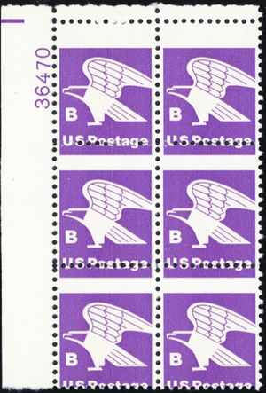1818, Perforation Shift Error Plate Block of Six B (18¢) Eagle - Stuart Katz