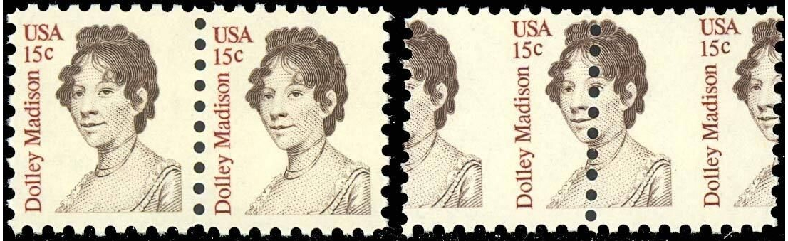 1822, 15¢ Dolly Madison MISPERFED ERROR PAIR WITH NORMAL