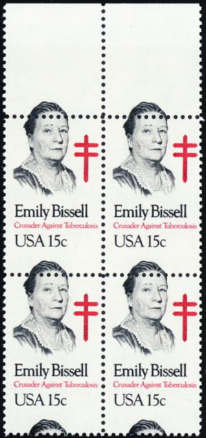 1823, MNH 15¢ Block - Perfs Shifted Freaky Error Emily Bissell *** Stuart Katz