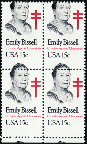 1823, MNH 15¢ Block - Perfs Shifted Freaky Error Emily Bissell ** Stuart Katz
