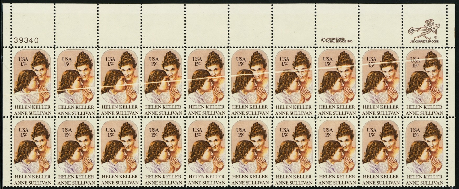 1824, 15¢ Pre Printing Paper Fold Error In PB Block of 20 Stamps - Stuart Katz