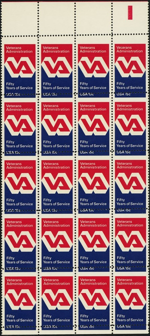 1825, Misperforation Shift ERROR Block of 20 Stamps 15¢ Veterans - Stuart Katz