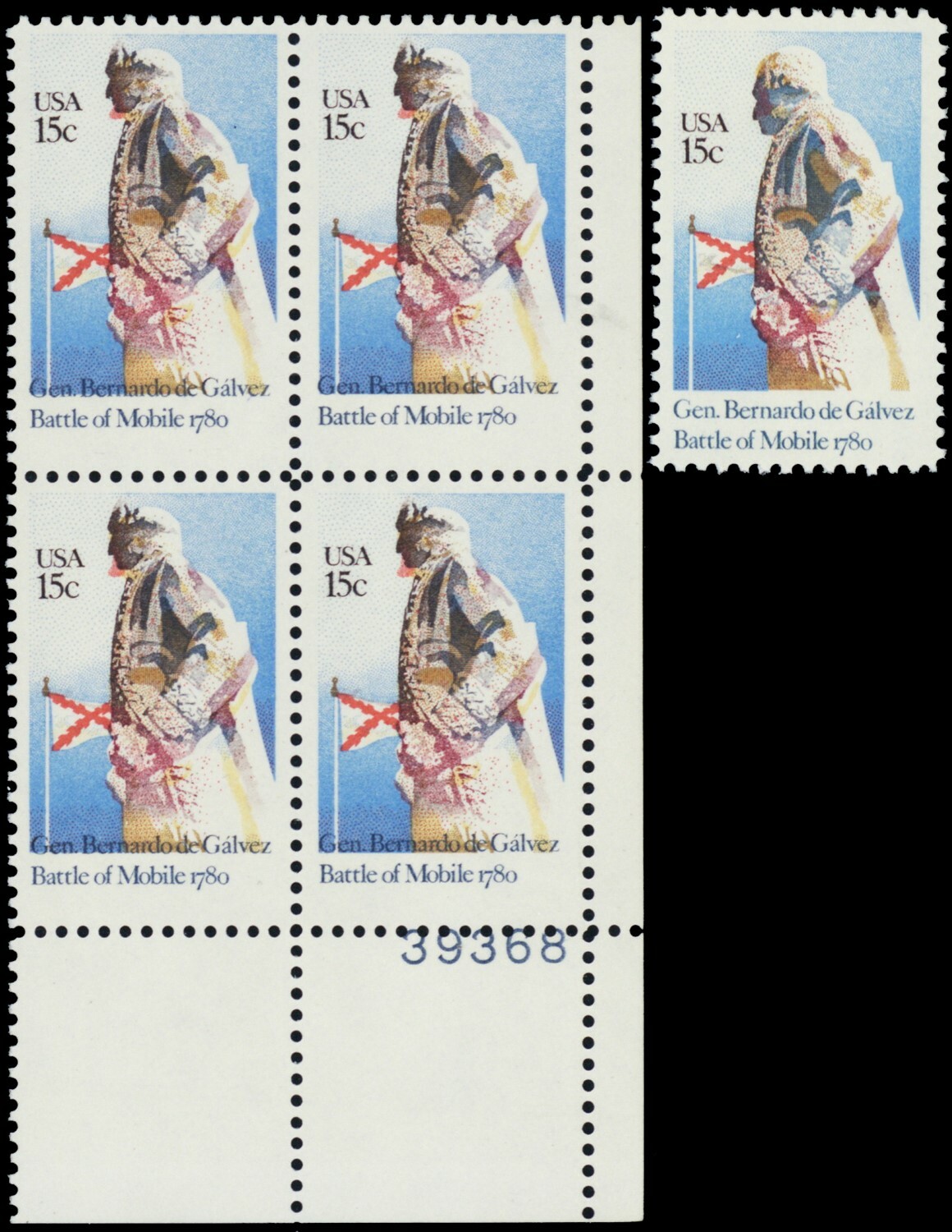 1826, MNH 15¢ Large Color Shift Error Plate Block of Four - Stuart Katz